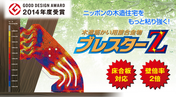 ブレスターZは、木製筋かいに金属の粘り強さをプラスした今までにない発想の木造筋かい金物であり、建築基準法の規定はもちろん、法令化することが困難な“大変形後の性能”にも配慮した製品としてひとクラス上の安全性をご提供したいと考えます。