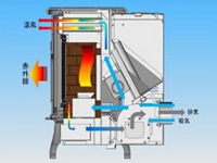 燃焼炉は蓄熱性の良い鋳物で覆われており輻射熱を発生させます。燃焼炉と熱交換部には放熱ファンが張られており、鋳物部の輻射熱を高めるとともに、高い熱交換率を実現。メインになる温風はクロスフローファンを採用し、優しい温風でお部屋を包み込みます。